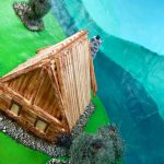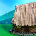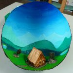 Huisje in schaal Bij de Witte Olifant kreeg iedereen de opdracht om iets in een ronde schaal te maken. Ik koos voor een maquette van een huisje in de bergen.